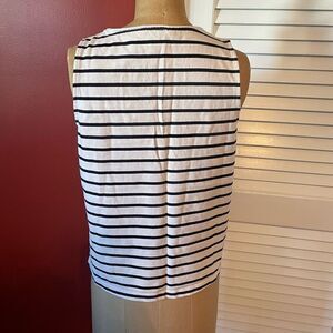 J CREW | black & white stripe sleeveless blouse with embroidery S