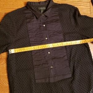 J. CREW blause. Black semi sheer, button down with tuxedo style front. Used only few times. Beautiful with Jean's on unders work suite. Size 0 , but p/p measures 18.5 inches.100% cotton. No stretch. <sb3.03>