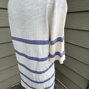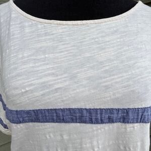 J. Crew women's size M, T-shirt. Textured cream fabric. Crew neckline, cream with chambray blue stripes. Made of cotton.