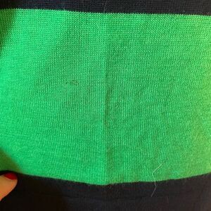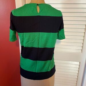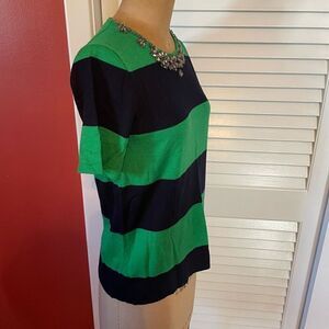 J CREW | green & black short sleeve striped sweater w beaded collar XS