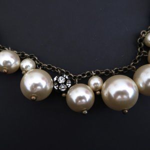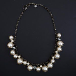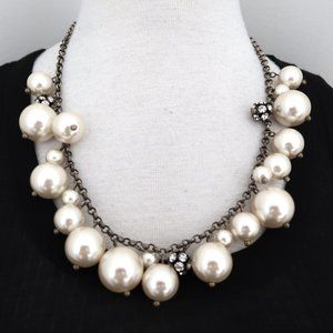 J Crew large faux pearl statement necklace with crystal embellished beads.