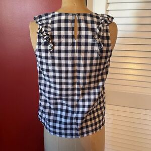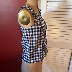 J CREW | navy gingham ruffle sleeveless blouse 2