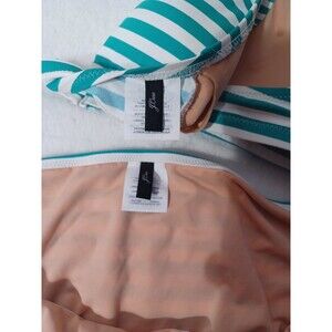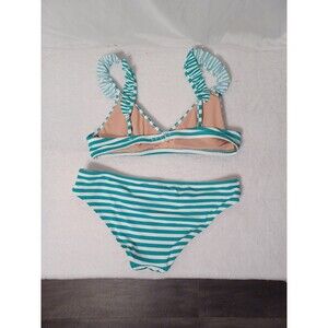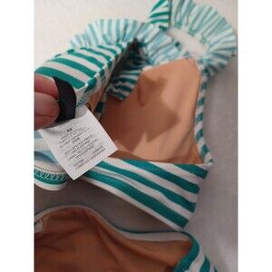 Excellent condition like new J CREW two piece bikini set color green with white lines, bottom size S and bra size M, 87 % polyamide 13 % elastane, lining 79 % polyester 21% elastane