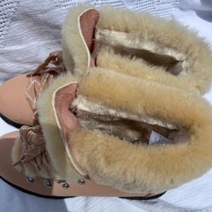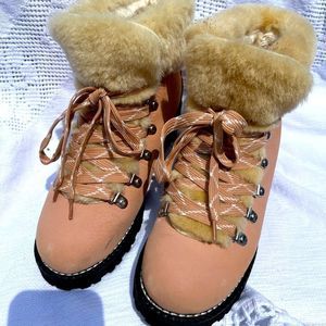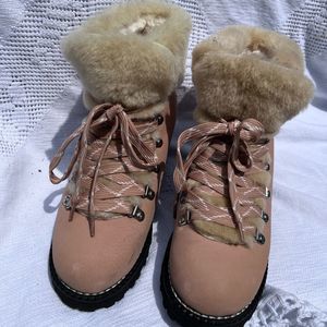 Gorgeous light rose colored leather hiking boots. Lace up ties. One inch rubber heel. Round toe. Excellent condition. Little to no wear. Gorgeous.