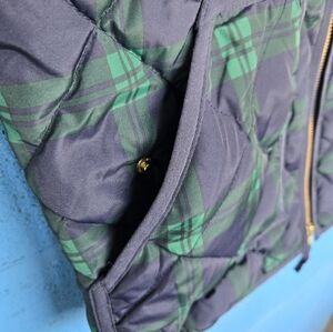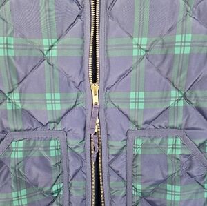 J. CREW Women’s Printed Quilted Down Puffer Vest Navy/Green Sz XS Waterfowl Feath