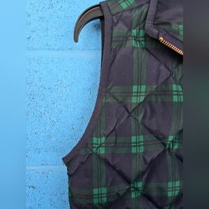 J. CREWWomen’s Printed Quilted Down Puffer Vest Navy/Green Sz XS Waterfowl Feath