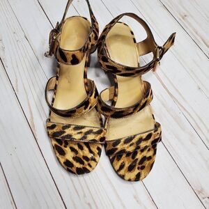 J Crew 3 strap leopard block heel sandal. Great with everything from jeans to dresses. Small amount of wear but not noticeable when worn.