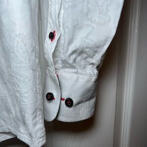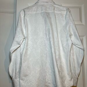 J Cado White Floral Embossed Long Sleeve Button Up Collared Shirt, Men's Large.