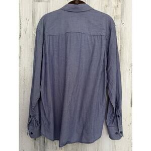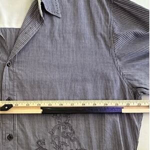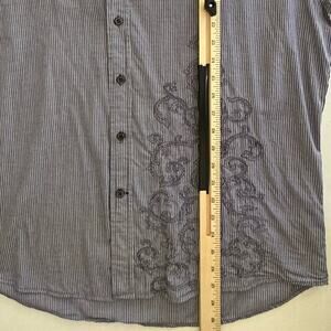 Item: J Campbell Mens Shirt Size Large Blue Stripe Embroidered Filagree Design