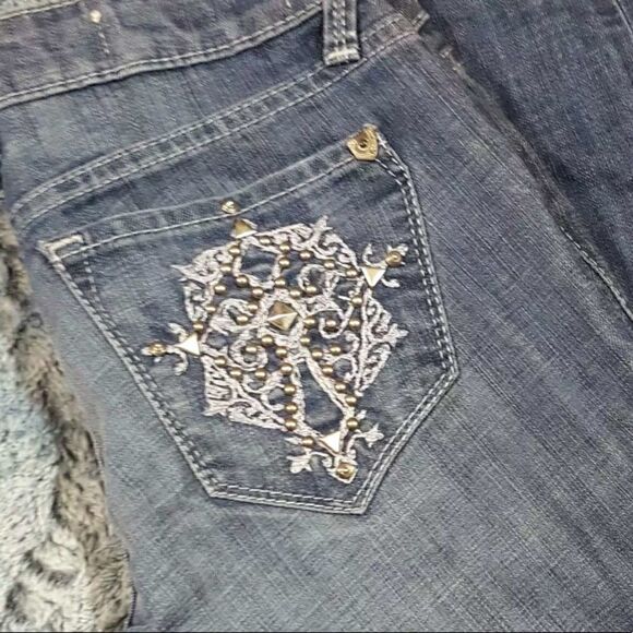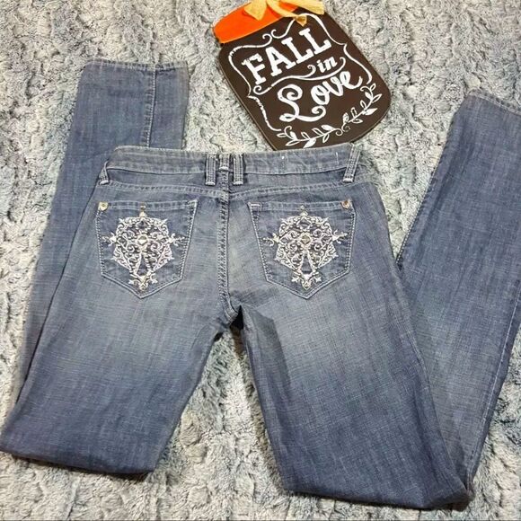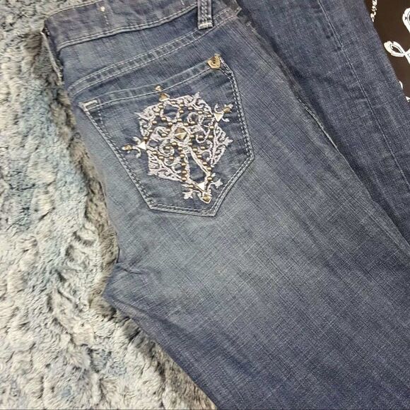 J & Company Beverly Straight Leg Jeans Rhinestone Bling Stitch Pockets Size 28