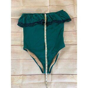J. Creew Women's Green Ruffle Bandeau Sleeveless One Piece Swim Suit - 10