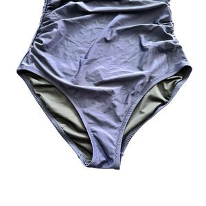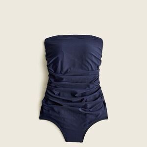 J. Crew 10 Ruched Bandeau One Piece halter navy blue Swimsuit