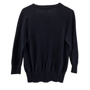 J Crew 100% Cashmere Cardigan Sweater Women Large Medium Navy Blue V-Neck Pocket