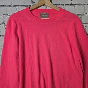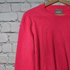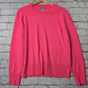 J Crew 100% Cashmere Classic Fit Crew Neck Knit Sweater In Bright Strawberry Pink Size Large