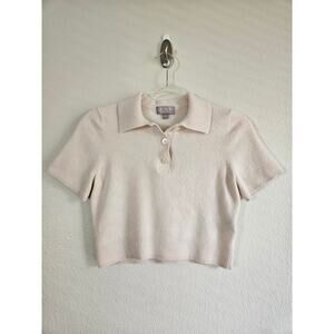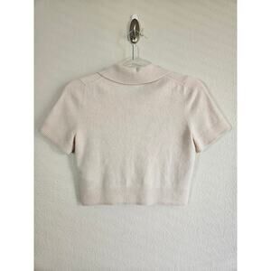 J. Crew 100% Cashmere Cropped Sweater-Polo, Size Small. Excellent pre-loved condition. No stains, holes, pulls, pilling or defects. So soft and cozy, and so on trend! Color: Heathered Muslin (Very light cream/pink color as shown in stock photo)