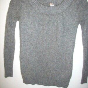 J Crew 100% Cashmere Sweater. Size: XS. Color: Grey. Ribbed Neck, Long Sleeves, Ribbed Bottom. On the back of sweater there is a small hole under arm pit that will need to be fixed. Comes from a Smoke Free, Pet Free Home.