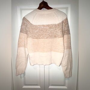 Cozy meets chic with this J.Crew cashmere blend sweater! Featuring a soft ombré color block design in neutral blush and beige tones, this pullover has a relaxed fit with ribbed cuffs and hem for a polished finish. The front button detail with tortoise-style buttons adds a touch of classic charm. Perfect for layering or wearing solo, this versatile piece will keep you warm and stylish all season long.