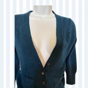 J. Crew 100% Cashmere Teal Cardigan Sweater – Buttons – Pockets – Women’s Small