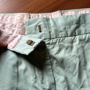 J Crew 100% Cotton Chino Broken-In Light Teal Size 4, Button Closure. Measurements in photos. In great condition with no stains or holes noted. Comes from a pet friendly, smoke free home.