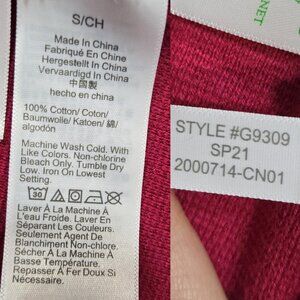 Good used condition, with no stains or tears. A dark pink button-up sweater blazer, with a notched lapel collar and pockets. Comfortable and breathable as it is pure cotton. Has light fuzziness throughout -- see the close-up photos.