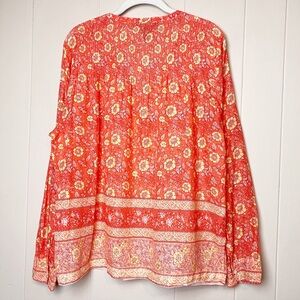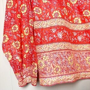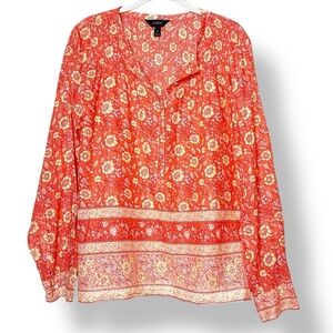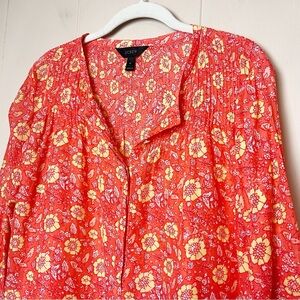 J. Crew 100% Cotton Floral Popover Blouse 12 top orange relaxed fit long sleeve