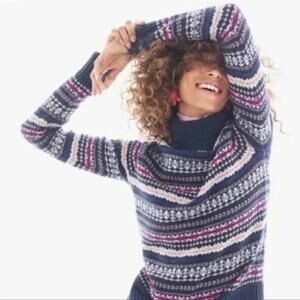 J. Crew 100% Fair Isle Blue Pink White Wool Turtleneck Sweater EUC!