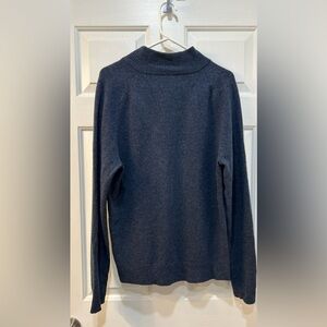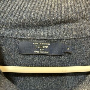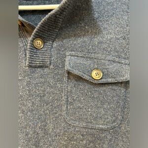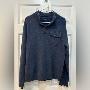 J. Crew 100% Lambs Wool Mock Collar Sweater Blue Marled Knit Pocket Men's Sz M