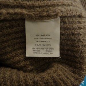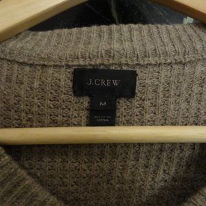 Good condition J. Crew Henley. Warm and comfortable, great for a nice walk outside. Nice tan color, 100% Lambswool. Medium. Please note that there's a slight hole in the fabric on the front, which I tried to document in the final photo. The hole is about the diameter of a dime and isn't terribly noticeable.