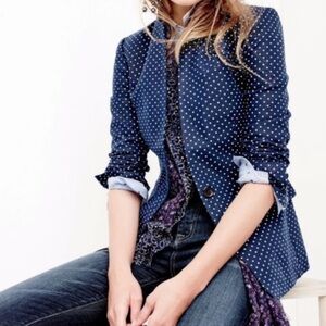 J. Crew 100% Linen Blue and White Polka Dot Regent Blazer