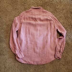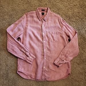 J. Crew 100% Linen Button Down Long Sleeve Shirt Red Mens XL Slim Fit