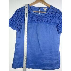 J. Crew 100% Linen Crochet Knit Lace Short Sleeve Top 2
