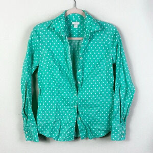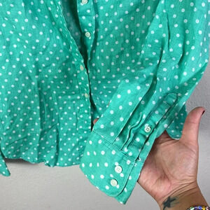 J. Crew 100% Linen Mint Green White Polka Dot Button Down Shirt size XS