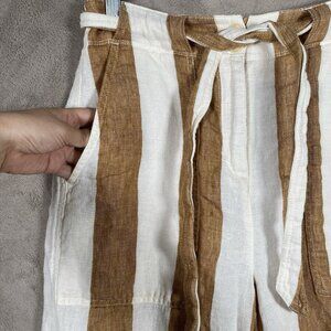 $168 J. Crew Tie-Waist Linen Pant in Stripe, Size 6