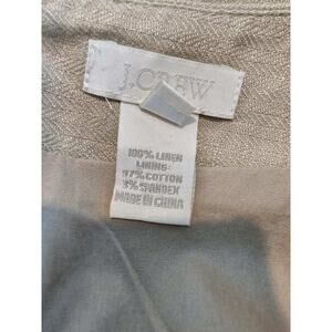 J Crew 100% Linen Pencil Skirt Womens Size 4 Lined Herringbone Side Stripe Tan