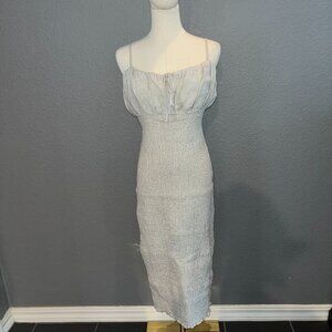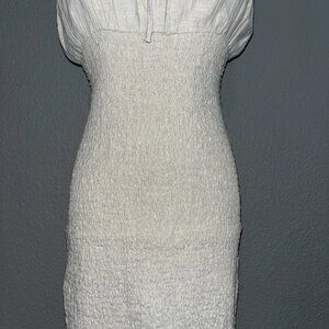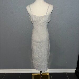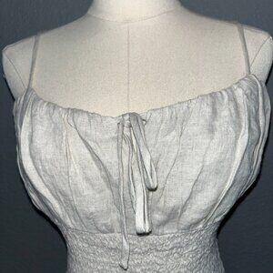 J. Crew 100% Linen Smocked Spaghetti Strap Bodycon Midi Dress in Oatmeal -EUC- 6