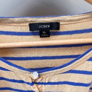 J. Crew 100% Linen blue and yellow striped t-shirt- Size XL