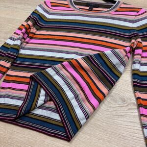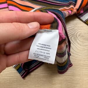 Multi color strip. 100% merino wool. Light weight knit. This is in excellent pre-owned condition.