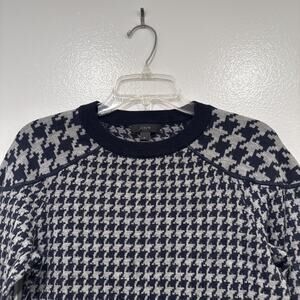 J. Crew 100% Merino Wool Houndstooth Sweater Women’s Size Small Navy Gray Preppy