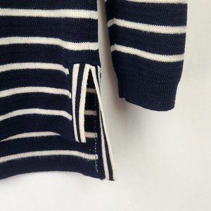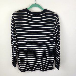 J. Crew 100% Merino Wool Navy White Stripes Embellished Crewneck Sweater sz XS