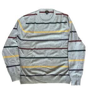 J Crew 100 Percent Cashmere Classic Preppy CrewNeck Gray Fall Striped Sweater