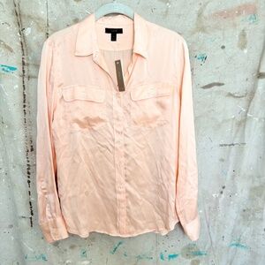 J Crew 100% Silk Blythe Peach Orange Button Down Shirt