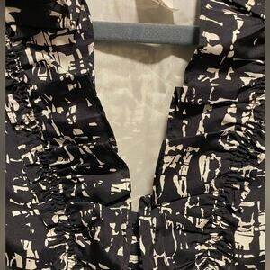 J. Crew 100% Silk Mini Dress Women's Size 8 Ruffled Front Black White Abstract