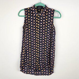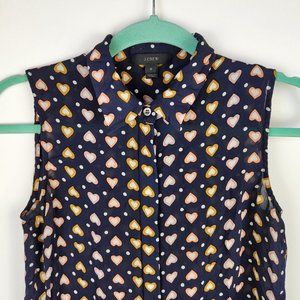 J. Crew 100% Silk Sleeveless Tunic Blouse in Heart Dot sz 0