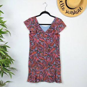 J. Crew Silk Vibrant Paisley Flutter Sleeve Dress