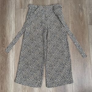 J. Crew 100% Silk Wide Leg Waist Tie Cropped Pant in Leopard Print Size 0