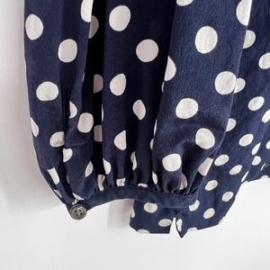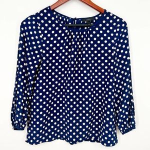 J Crew 100% Silk Women’s Size 0 Navy Polka Dot Blouse Shirt Top