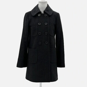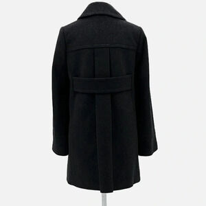 J. Crew 100% Wool Double Breasted Pea Coat in Charcoal - Size 0. Great pre-owned condition. Not much wear at all. Such a nice coat! Style 99046 from 08 but it hardly appears worn at all. I did clean some surface soil off of one cuff so you'll definitely want to have it dry cleaned. A-line cut with single large long inverted pleat down the center of the back and an attached self belt. 100% wool with an acetate lining. Dry clean. 4 pockets, double breasted. Approximate measurements: 18" pit to pit, 32" length.