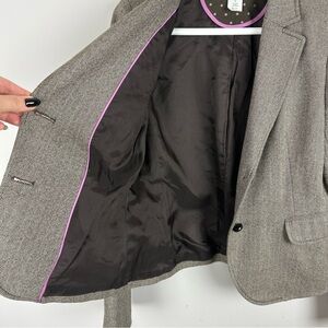 J. Crew 100% Wool Herringbone Blazer Leather Buttons sz 10