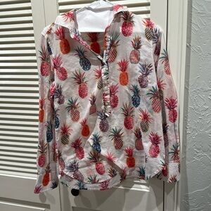 Embrace a tropical vibe with this stylish pineapple print top. Perfect for casual outings, this top features vibrant colors that add a playful touch to your wardrobe.