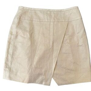 J. Crew 100% linen gold metallic front slit mini skirt size 10